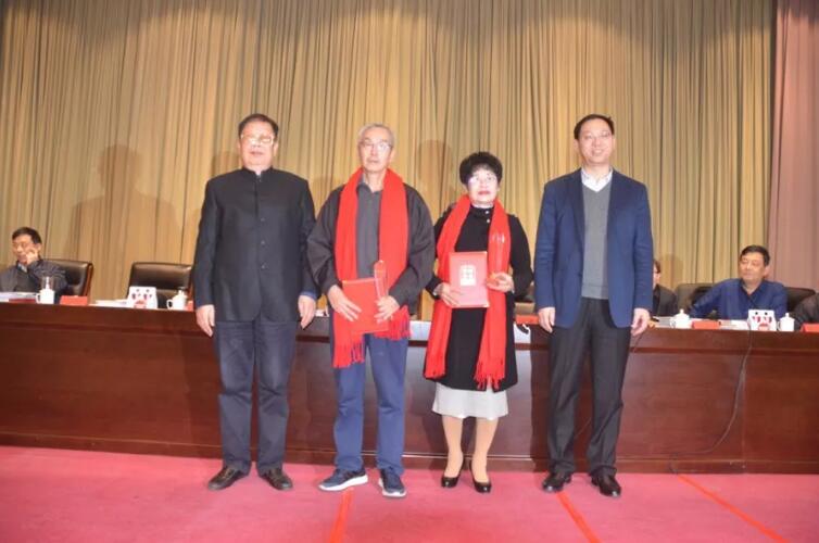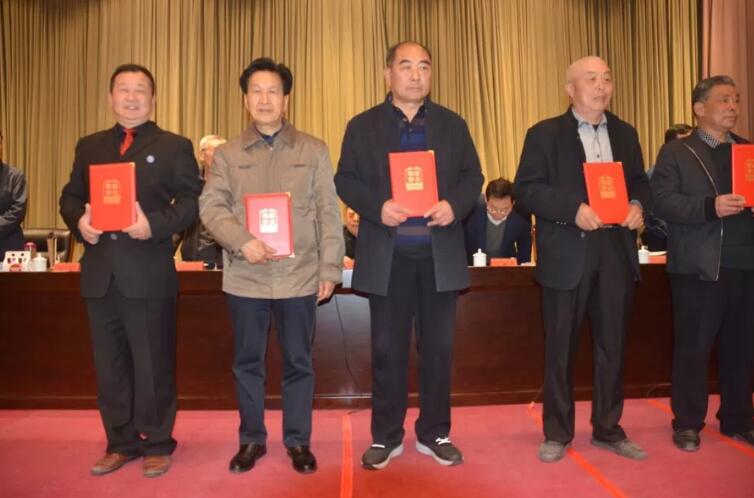 石小生会长还宣读了《河南省姓氏文化研究会关于授予冯邦、陈瑞松、杨海中、郑朝增和王道生五位同志终身成就奖的决定》,并由林宪斋会长、谷建全副会长颁发奖杯及证书。