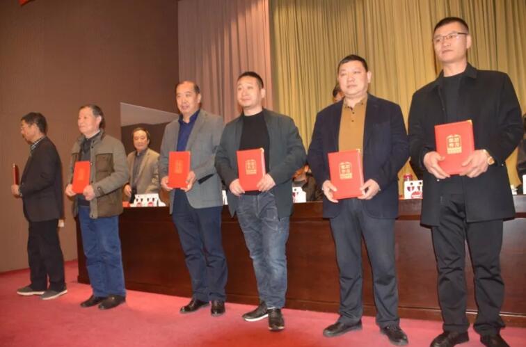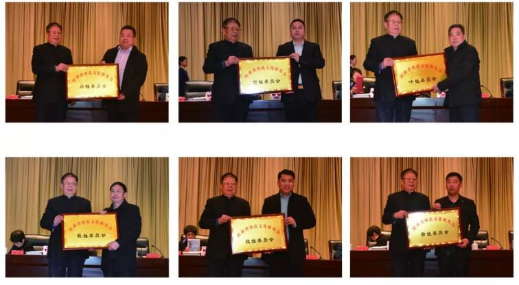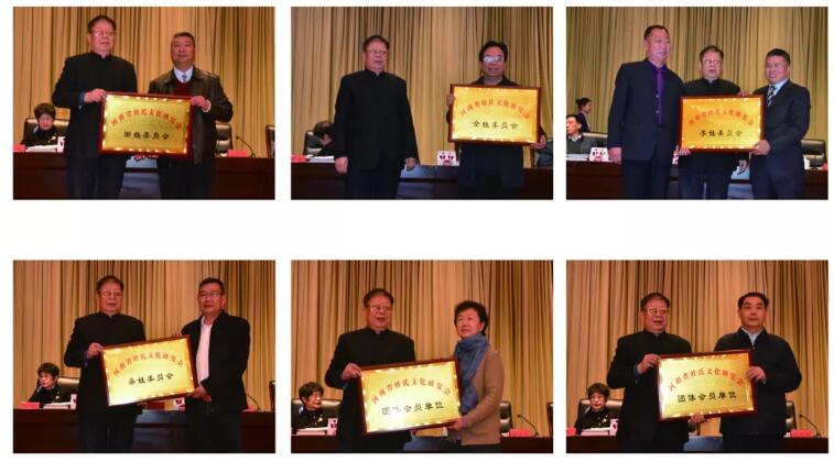 林宪斋会长为新发展的赖姓委员会、贺姓委员会、叶姓委员会、程姓委员会、段姓委员会、骆姓委员会、田姓委员会、仝姓委员会、李姓委员会、桑姓委员会十个分支机构,和信阳根亲文化研究会、平顶山市姓氏文化研究会两个团体会员单位颁发了铜牌。